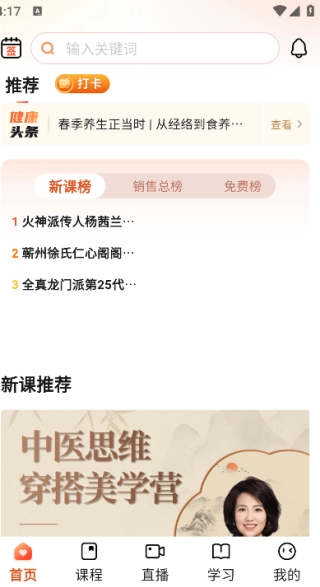 在主页面即可看到新课榜、销售总榜等功能;