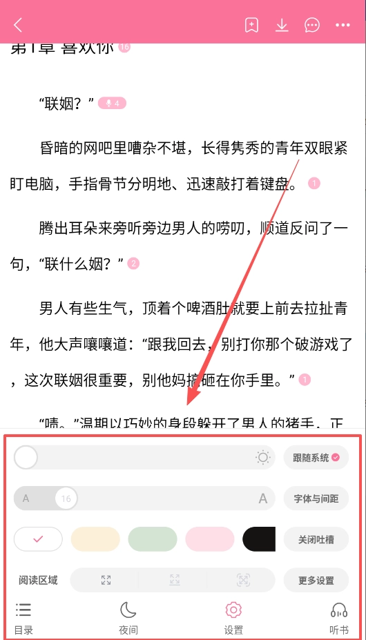 阅读设置选项支持用户自主调整,以构建最契合个人偏好的阅读场景,助您尽情体验流畅的阅读愉悦感。
