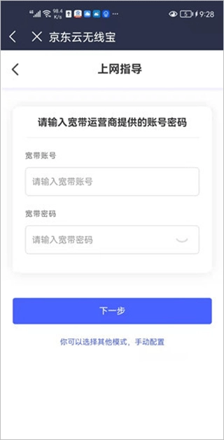 若系统检测到您使用的是拨号上网的宽带类型,则需准确填写宽带账号和密码,这两项信息务必确保正确无误,一旦填写错误,将直接导致无法正常连接网络。