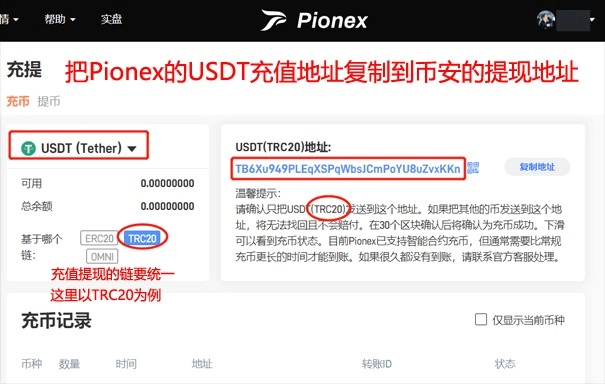 第一步:确认Pionex充值地址