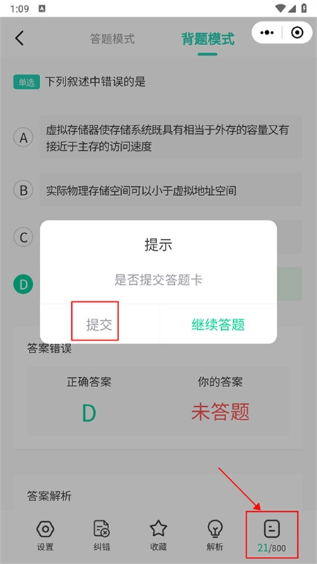 4、这里我们就进入了答题模式,点击“背题模式”,就切换为背题模式了,直接显示答案,下方的解析也十分的详细易懂。
