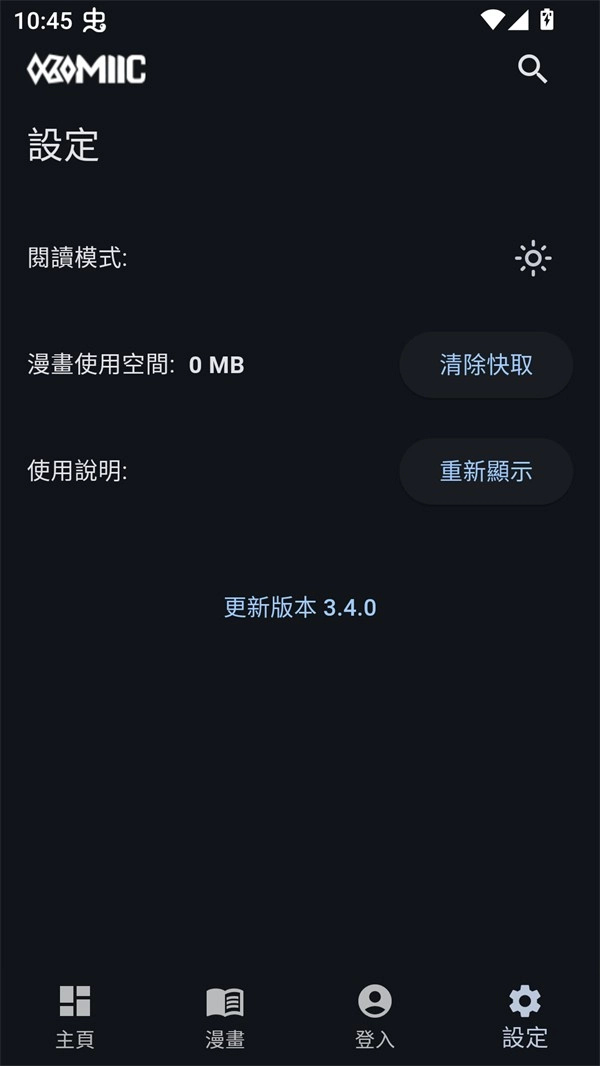最后我们也可以点击右下角的“设定”按钮进入设置页面,进而对阅读模式、漫画使用空间、使用说明等参数进行设置。