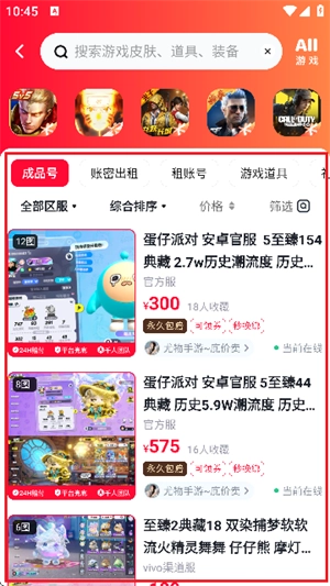 卖号服务:轻松上架自己的游戏账号,操作简单。
