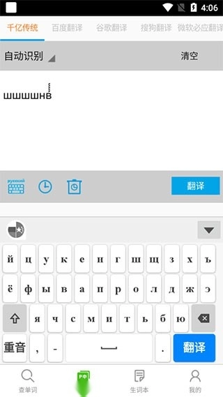 在本站提供的软件中,进入软件后切换到翻译界面,输入对应的俄语或中文并点击翻译按钮,即可完成翻译操作。此外,软件还会为用户解析相关词语的含义及用法。