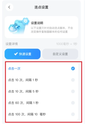 点击悬浮窗的[开始点击],点击器默认点击1次。