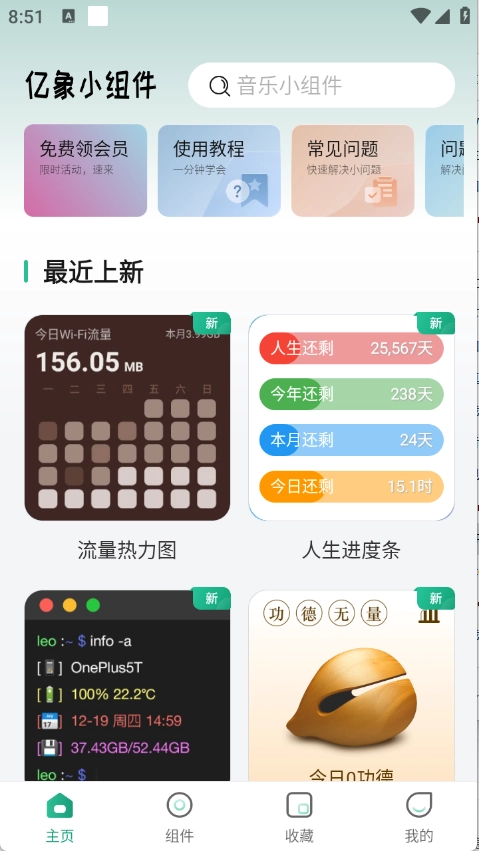 主页为用户提供了当下热门的小组件,所有组件均可免费使用。