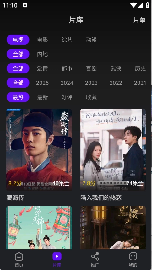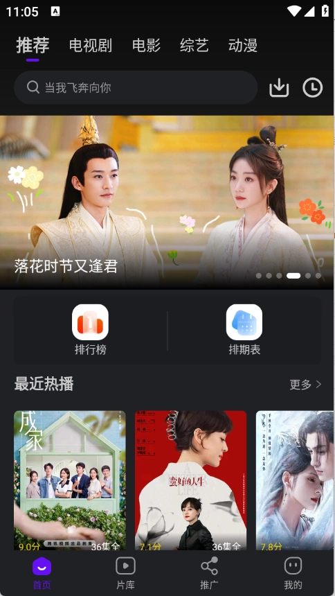 首页顶部栏汇集了丰富多样的影视剧集,包含各类电视剧、电影与综艺节目。
