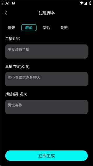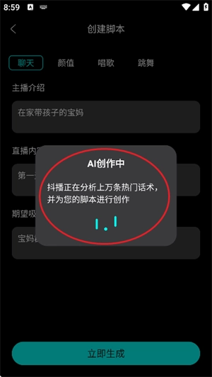 直播脚本可实现秒级生成:只需输入关键字,就能自动生成完整的直播脚本内容。