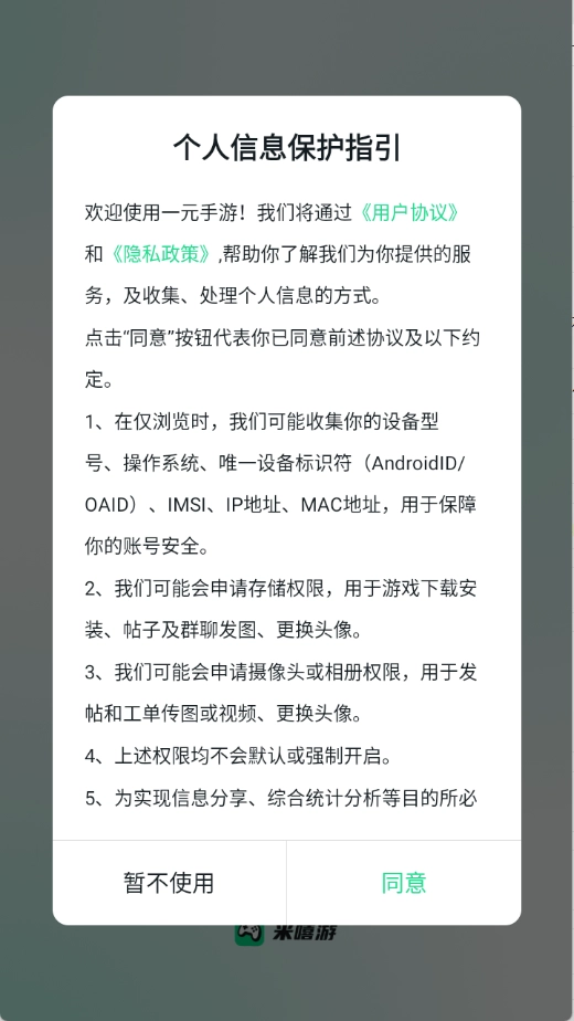 用户首先要在3G游戏网米嘻游平台上,找到并阅读隐私政策与用户协议,之后点击同意相关条款。