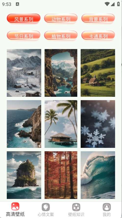 壁纸页面汇聚了丰富多样的壁纸资源,涵盖风景、动物以及卡通等多种类型。