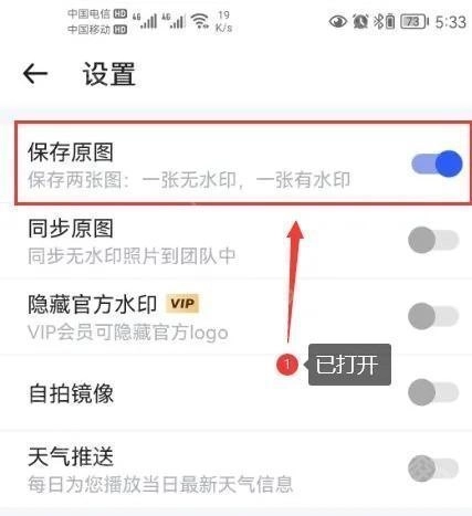 打开后,系统会自动保存设置,之后退出设置功能即可【截图中圈红的部分】