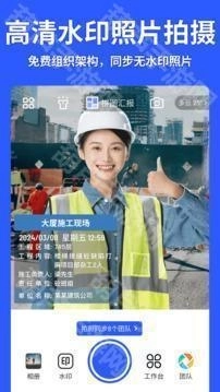 3、配备专业工程水印功能,无需再进行举牌验收,一键即可生成监理日志与施工汇报;支持免费搭建组织架构,还能同步存储无水印照片;