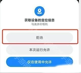3、打开马克水印相机应用,在进入应用的过程中关闭“定位权限”。