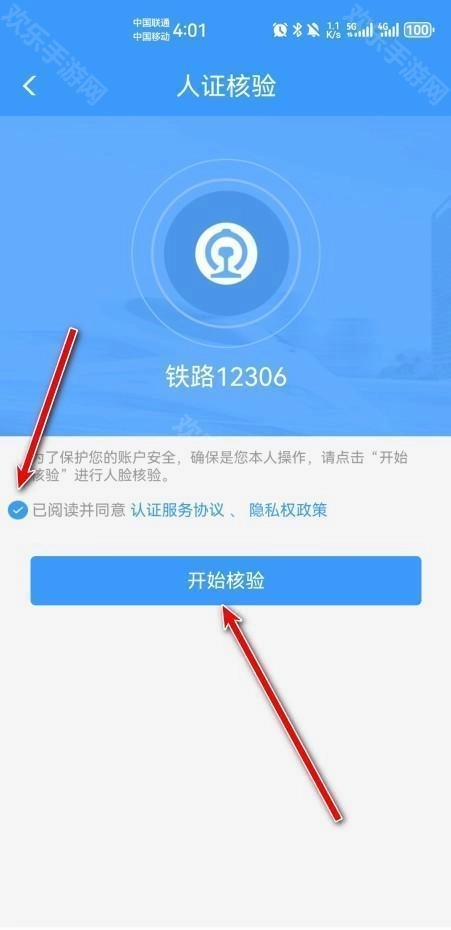 5.请勾选“已阅读并同意认证服务协议、隐私权政策”,然后点击“开始核验”以完成人脸识别认证。
