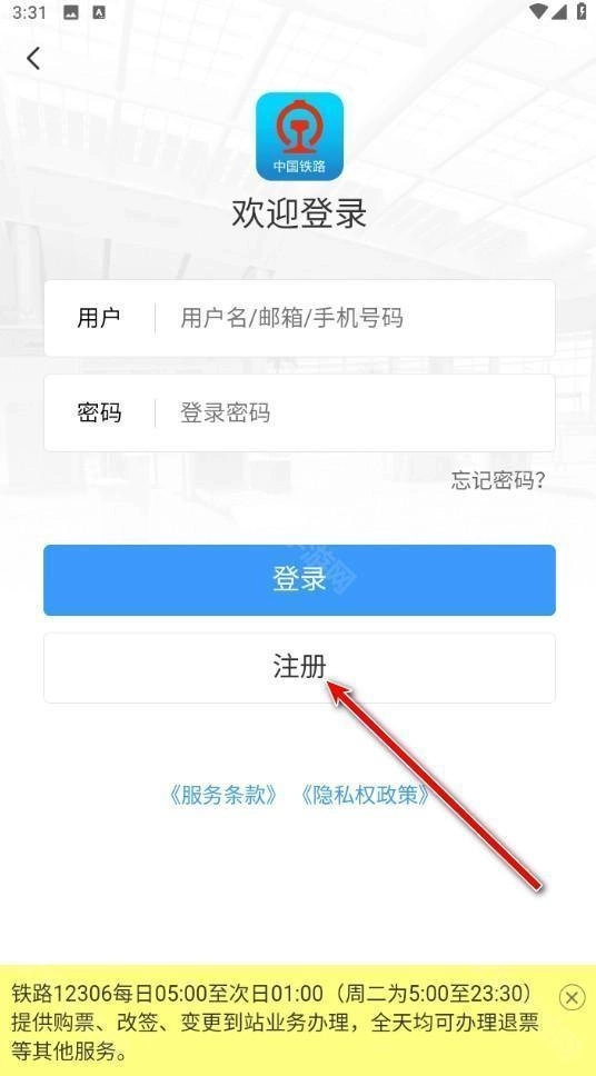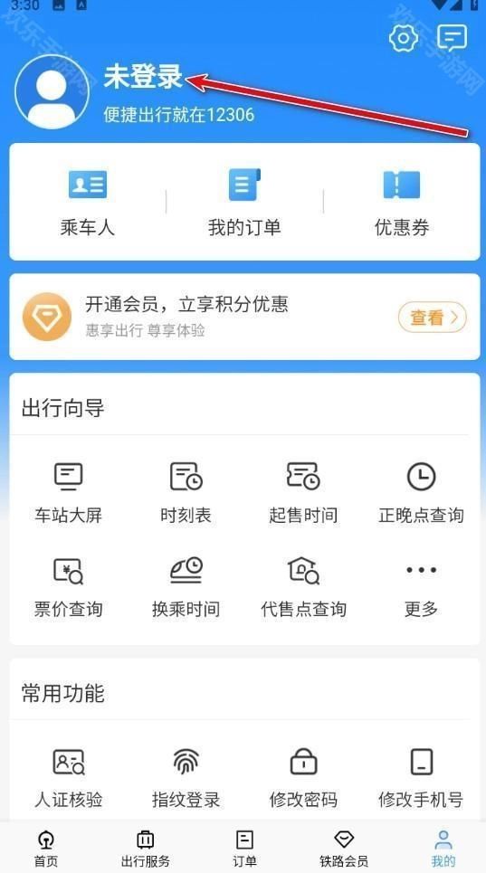 2、打开已安装好的12306手机客户端,进入“我的12306”页面。在此页面中进行12306账号登录操作,输入用户名与密码后,点击“登录”按钮,即可完成登录。