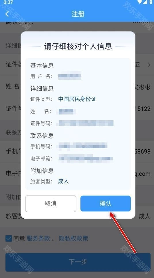 5.勾选同意服务条款、隐私权政策,点击下一步。