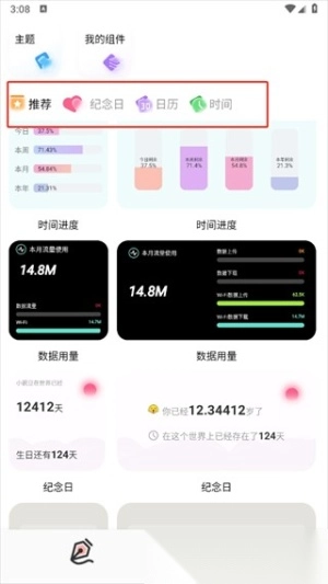 不同主题与类型的小组件,像天气、日历、内存管理、待办事项之类的,能够满足各式各样的需求。