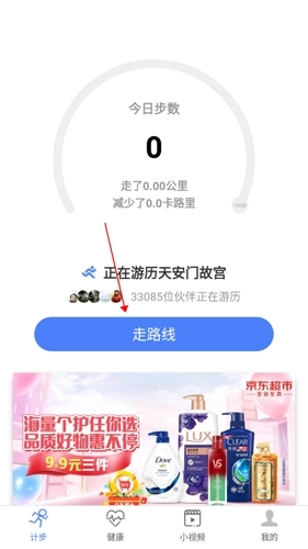 1.首先点击中间的走路线。