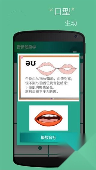 2、采用标准的嘴型图形和嘴型动画引导,结合地道的美式发音,帮助用户掌握正确的音标;