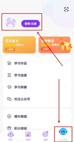 1、首先打开进入右下角【个人中心】,继续点中【登录/注册】;