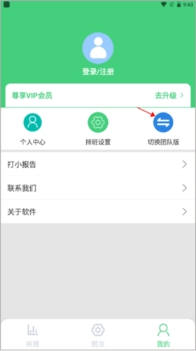 1、打开E排班软件进入到【我的】页面,点击右边的切换团队版。