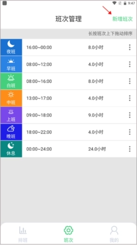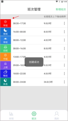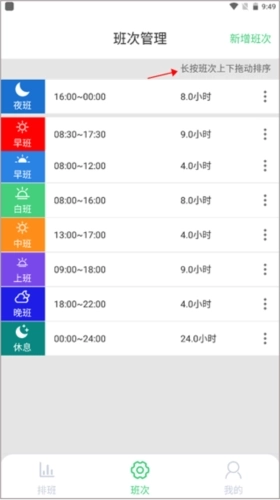 4、你还可以长按其中一个班次进行上下拖动,调整好顺序。