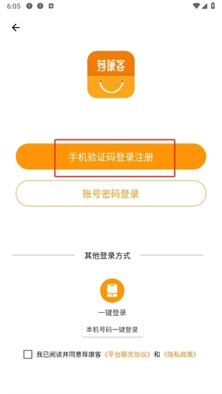 2、然后会来到登录的页面中可以看到有手机验证码登录注册、账号密码登录、一键登录,我们点击【手机验证码登录注册】;
