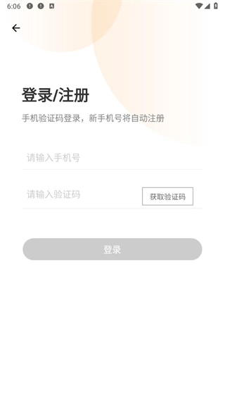 3、最后点击过后在登录/注册的页面中我们输入上手机号和验证码后点击【登录】即可;