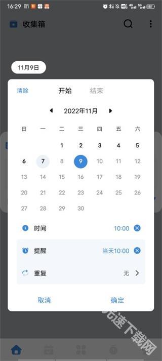 3、详细内容区域内的小图标依次对应时间、标签、子任务和优先级功能。点击日历样式的图标后,可选择任务的具体时间并设置提醒,最后点击确定按钮完成操作即可。