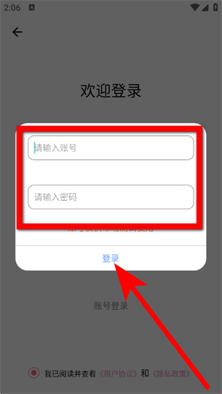 4、在对应的输入框中填写好账号与密码,勾选相关协议后,点击登录按钮,即可完成该操作。