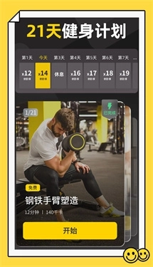 2、用户只需选择好自己的健身时间,点击“开始”按钮就能启动训练,整个过程无需繁琐的设置和复杂的操作,简单又便捷。