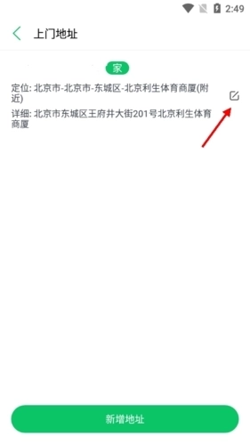 3、此处展示了用户该账号下所有使用过的地址,您既可以选择新增地址,也可以点击任意地址右侧的小笔记图标来修改当前地址。