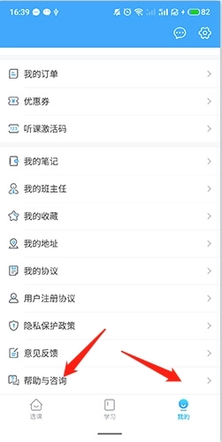 1、启动软件后,点击底部的“我的”按钮,接着选择“帮助与咨询”选项。