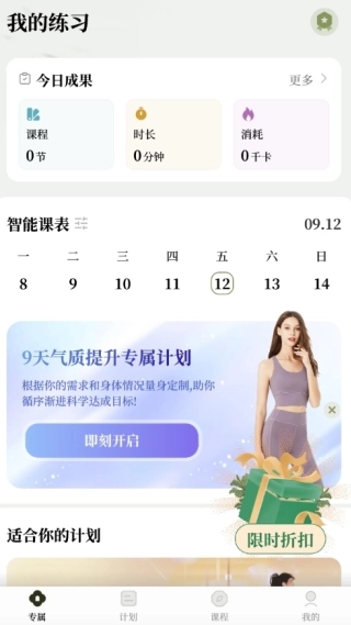 1、进入专属模块后,用户可查看当日成果,同时也能看到智能课表,以便随时规划个人计划。