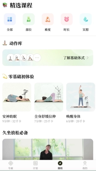 100+瑜伽和拉伸动作任你选择,根据个人需求与进度,创造专属课程,满足不同阶段的锻炼需求。