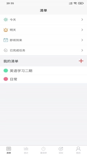 3、围绕番茄工作法构建的时间管理工具,涵盖任务清单、番茄闹钟、目标管理与统计图表功能。