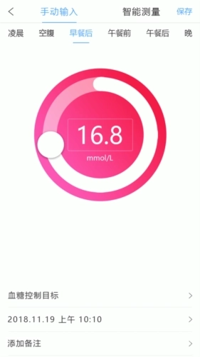 你可以在这里手动记录自己的血糖情况,还能实时监控血糖的变化趋势。
