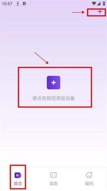 1.登入软件后在【首页】点击中间的+号按钮或是右上角+号添加设备