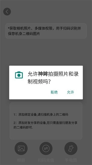 3.进入扫描页面,使用手机摄像头对准设备上的二维码就行,也可以添加好友分享的设备,只需直接扫描朋友分享的二维码即可