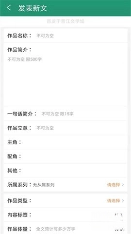 4、根据界面提示填写相关信息,即可成功发表小说。