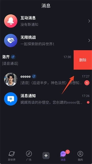删除的操作方法是,在消息界面里选中虚拟人,然后向左滑动一下就能将其删除了。