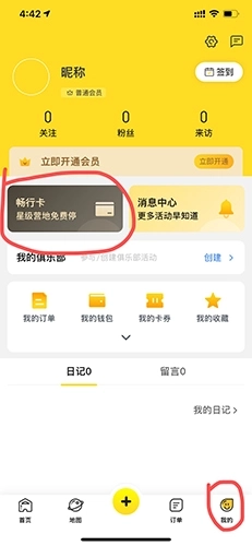 1.玩家先点击“我的”,然后点击“畅行卡”。