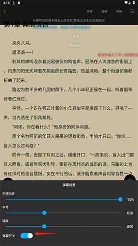 2、进入阅读页面后,轻点屏幕,接着选择“弹幕”选项。