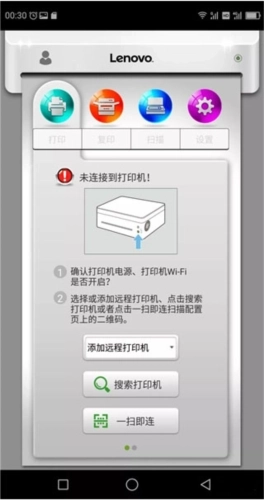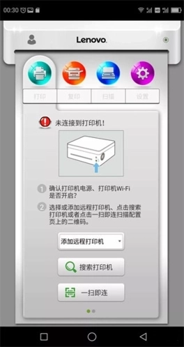 2、在手机上打开小新打印软件后,系统会自动添加打印机;此外,也能通过一扫即连功能扫描“打印配置页”上的二维码来完成连接。