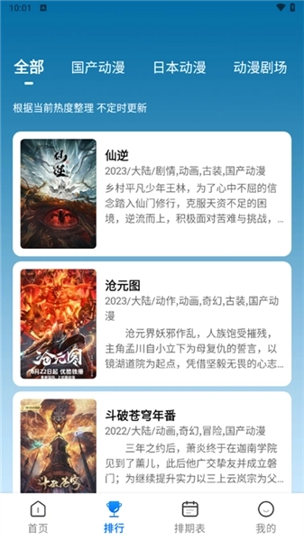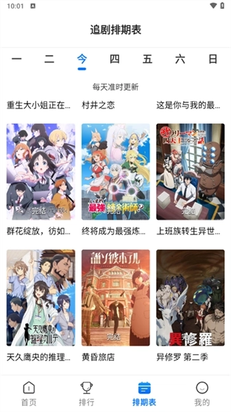 3、在排期表界面中,我们可以查看每一天的动漫更新安排。