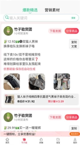 3、另外还有竹子圈,里面汇集了各类优惠产品,分享出去还能赚取收益