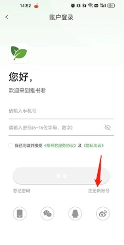 2、点击“注册新账号”选项。