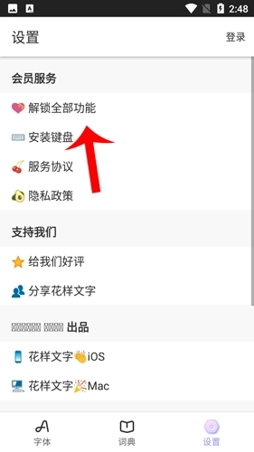 花样文字里有各种各样的字体效果供你挑选,能让你获得更炫酷的文字输入体验,还可以设置独立键盘,确保你输入文字时不受干扰。
