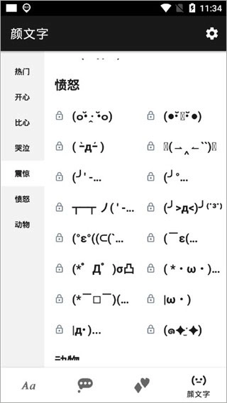4、颜文字:除了上述功能外,软件还为用户提供了各式各样的颜文字,帮助用户轻松且精准地表达出自己内心的想法。