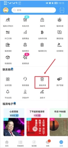 1、打开看福清,在首页中点击右下角应用;